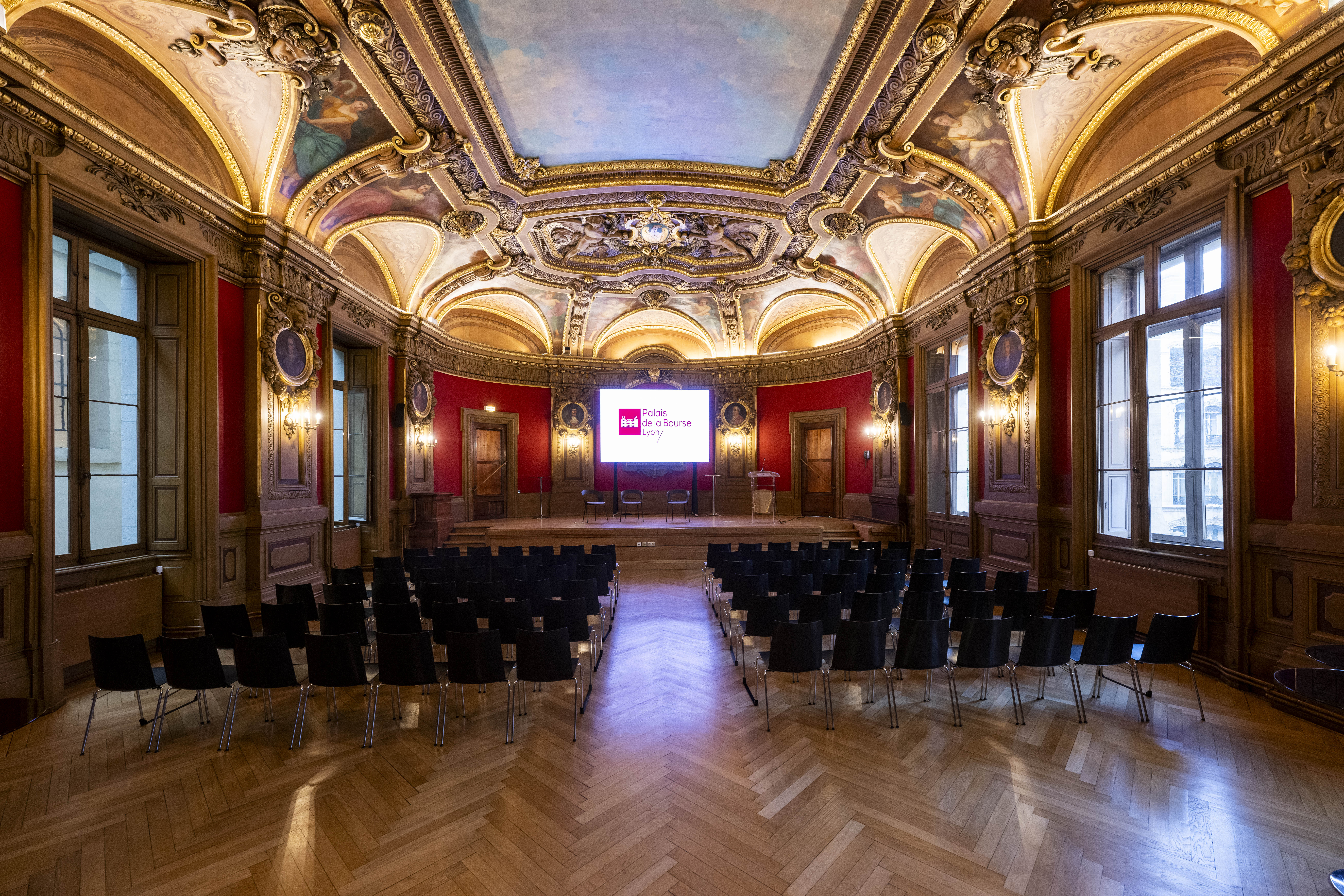 Ancienne salle des Portraits de la Chambre de Commerce, décorée de médaillons sculptés représentant les présidents historiques. Élégante et lumineuse, elle est idéale pour réunions, formations, séminaires et cocktails, avec palier attenant pour pauses et buffets.